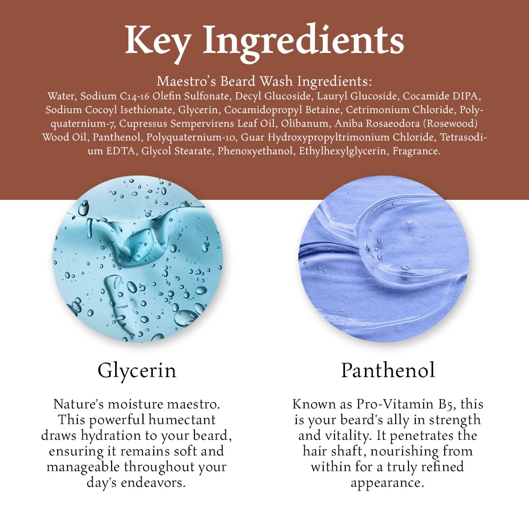 - HOW THE MAGIC HAPPENS: Since every Maestro is different the amount used will vary. In the sink or shower we recommend applying a nickel size amount of Maestro’s Classic Beard Wash and working it through your beard vigorously while enjoying the performance of the foaming action. Rinse your beard completely, towel dry, then look forward to Step 2 in Beard Care with Maestro’s Classic Beard Butter.