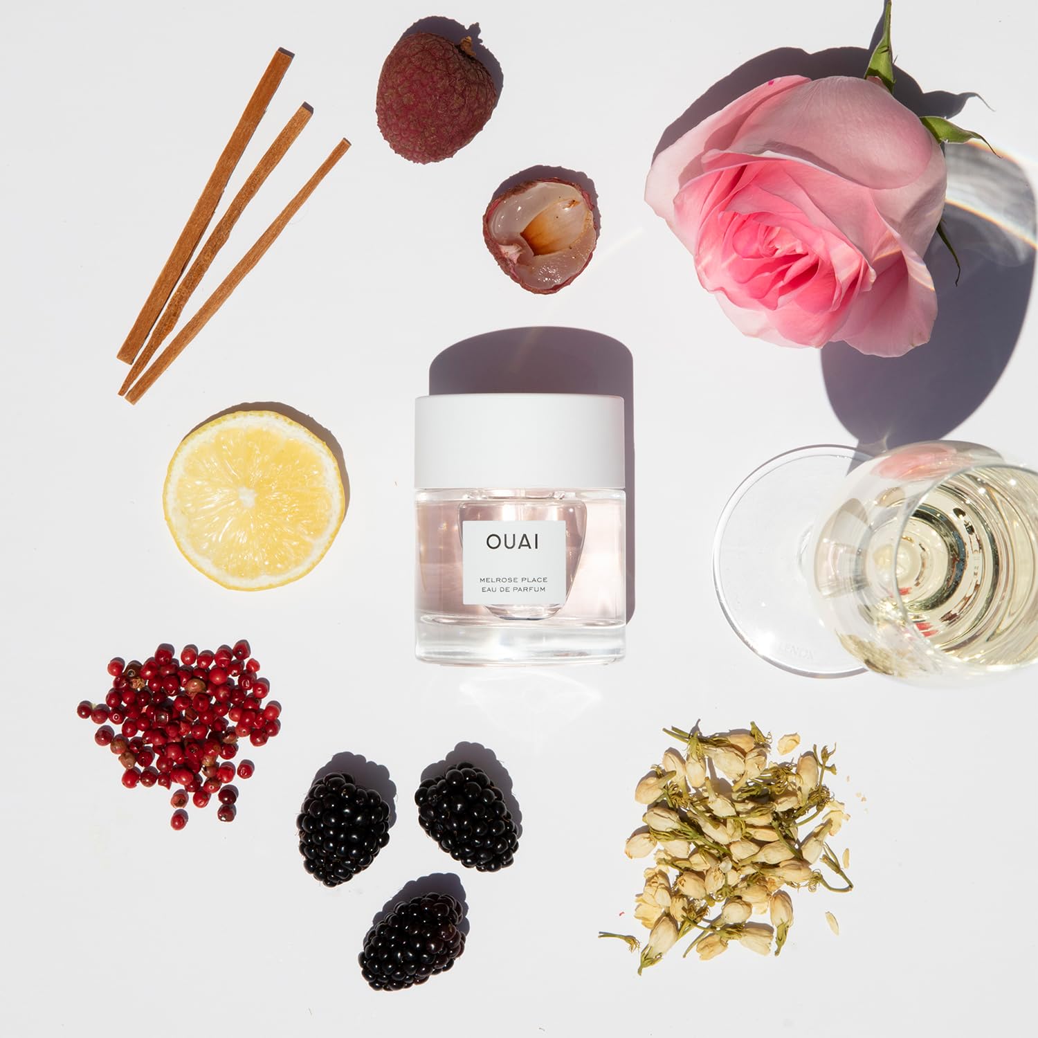 OUAI Melrose Place Eau de Parfum - Elegant Womens Perfume for Everyday Wear - Fresh Floral Scent has Notes of Champagne, Bergamot and Rose with Delicate Hints of Cedarwood and Lychee (1.7 Oz)