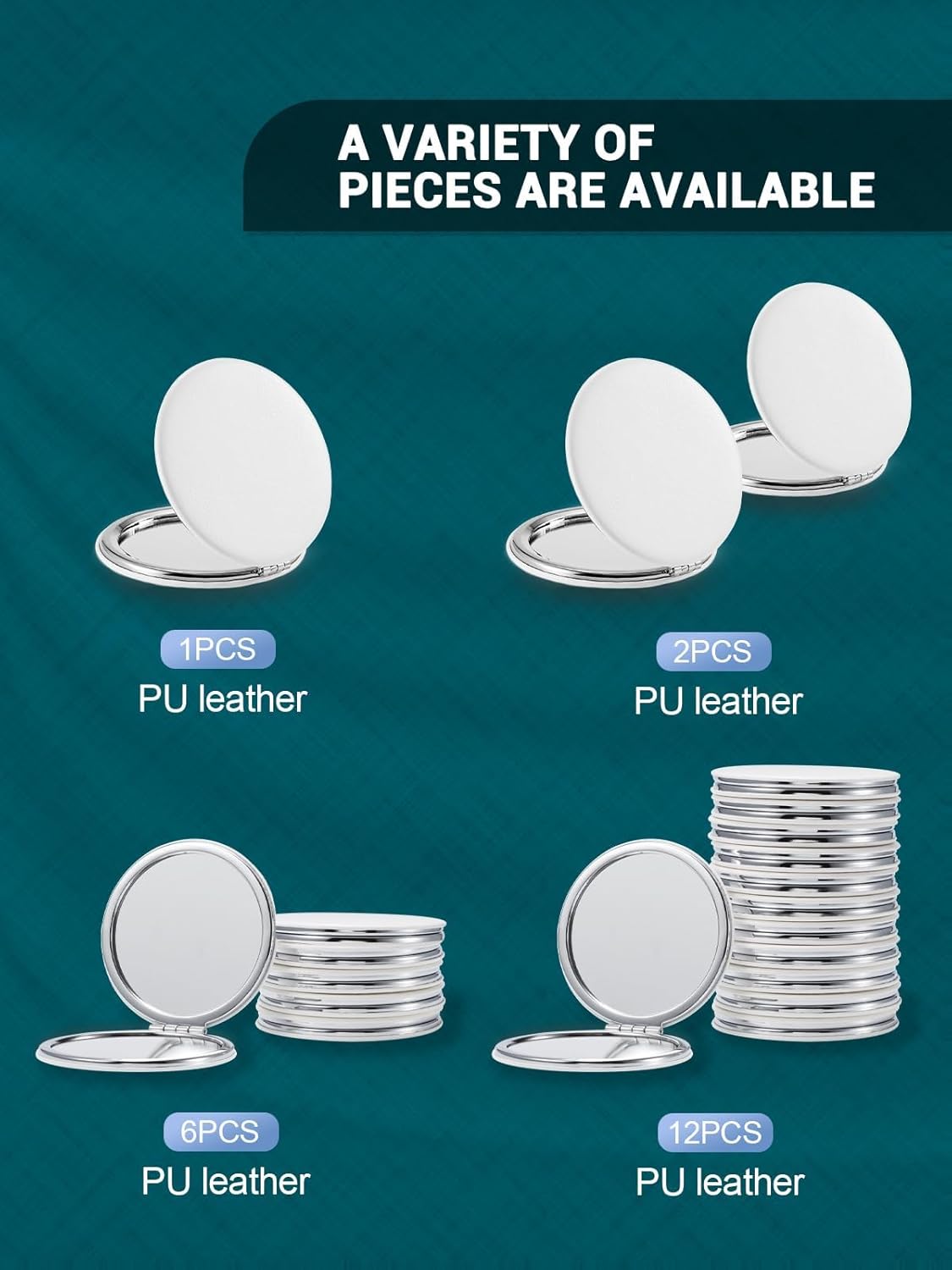 Compact Mirror Bulk, Set of 6 Round Double-Sided 1X/3X Magnification PU Leather 2.8" (White)