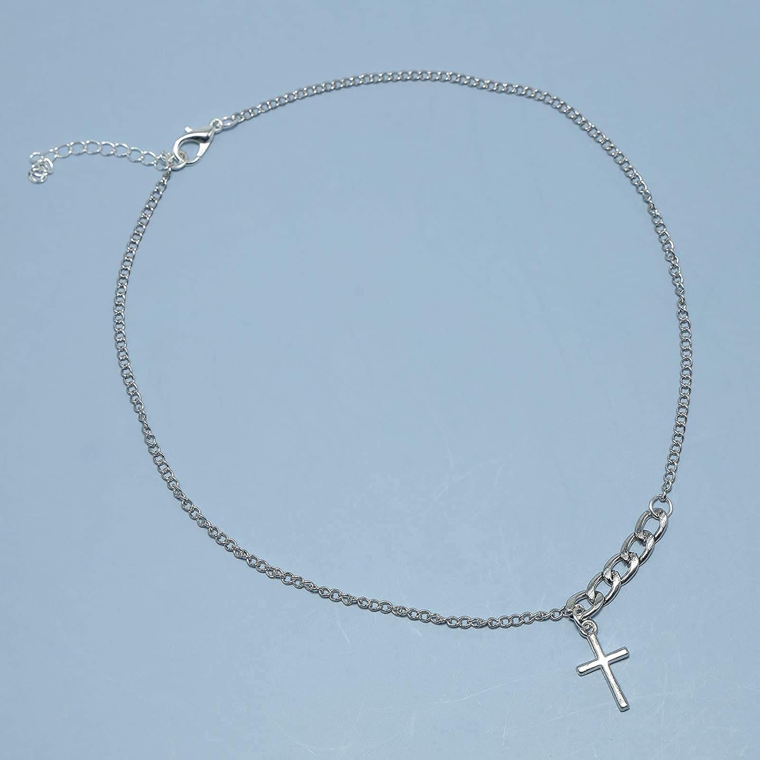Vintage Cross Necklace Creative Chunky Cuban Chain Tiny Cross Pendant Choker Clavicle Chain Necklace Jewelry for Women and Girls