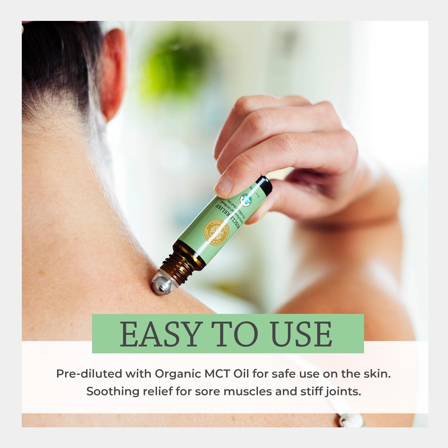 Silk Road Organic Muscle Relief Essential Oil Blend Roll On, 100% Pure USDA Certified Aromatherapy for Muscle Aches & Stiff Joints with Peppermint & Ginger - 10 ml Roller