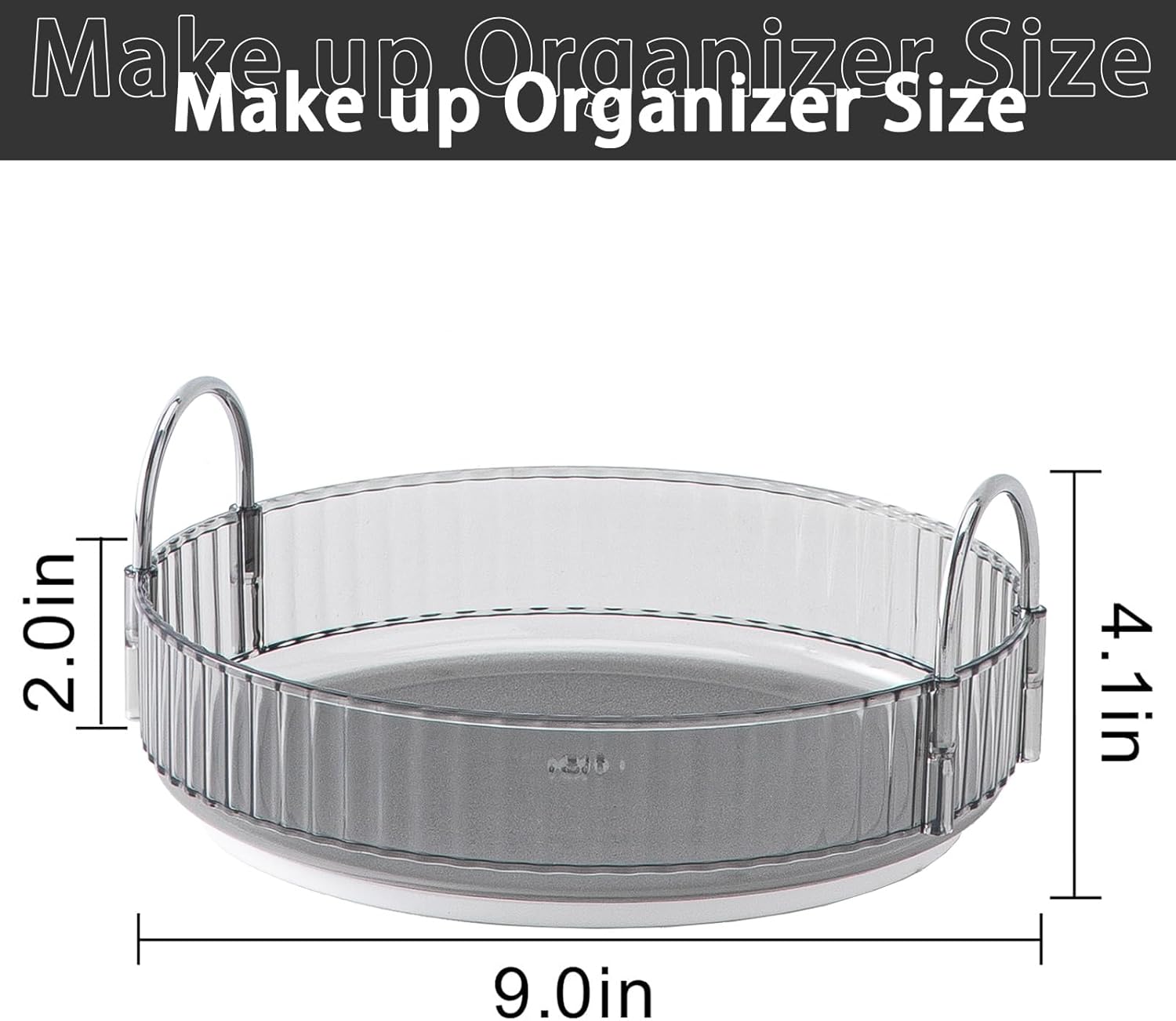 - mooth Rotation: 360 degree rotation makes it easier to find what you need and brings you a convenient using experience. Tray edges are 1.96'' high to ensure that cosmetics do not fall out when
