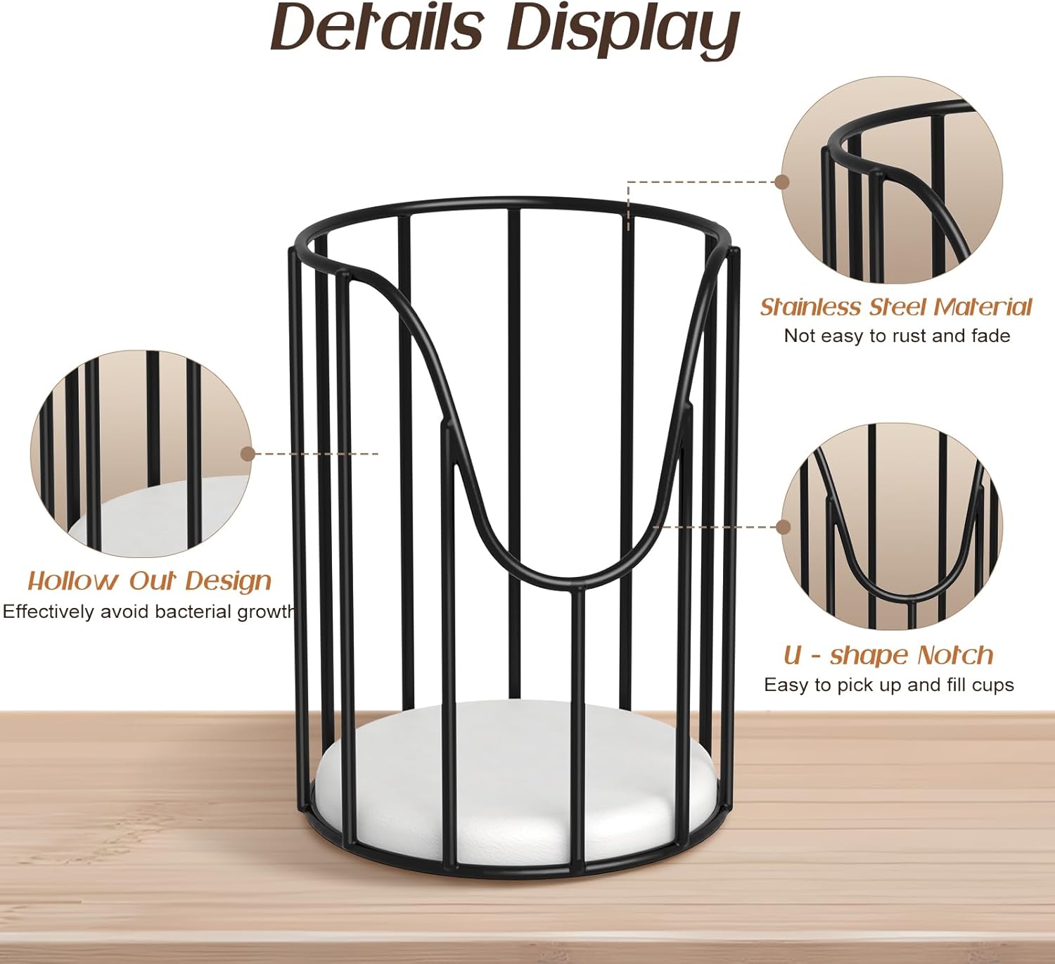 - Smart U-shape Notch Design: The Dixie cup holder features a U-shaped design on the front, making it easy to take out and fill cups. It fits 3-5 oz paper cups, glass cups, and plastic cups. The hollow grid design allows you to see when it needs to be refilled.
